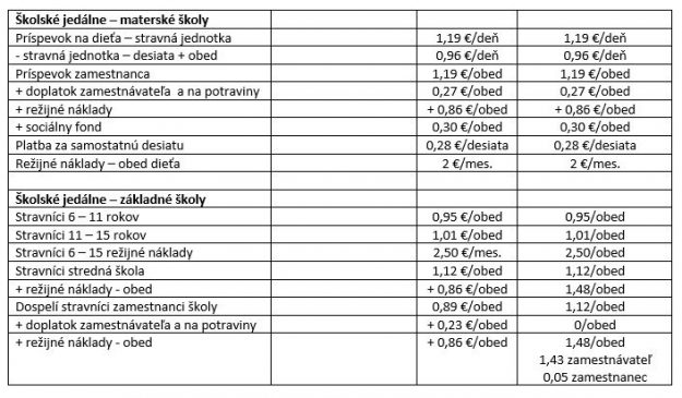 + doplatok zamestnávateľa režijné náklady   1,48 €/obed